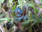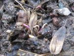 Schon nach wenigen Tagen mit wärmerer Witterung zeigen sich beim Waid die Sprossen mit ihrer typischen Purpurfärbung, die sich in den Boden bohren. Kurz darauf sind die Keimblätter zu sehen, die sich ins Licht ![]()
